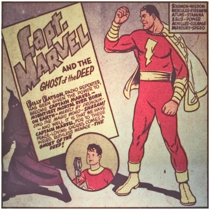Captain Marvel's alter ego was a 12-year old radio reporter named Billy Batson, a copy of Superman's alter ego, reporter Clark Kent, but younger to appeal to adolescent readers. Billy Batson's name was partially based on the nickname given to Fawcett Publication's founder Wilford Fawcett — "Captain Billy".